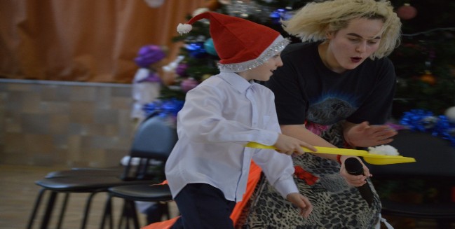 Новогодний праздник – чудесный праздник, связанный с надеждами на лучшее в грядущем году, с ожиданием исполнения всех желаний. Не остались без внимания и ребята среднего звена, учащиеся 10 и 9 класса и для них подготовили новогоднюю программу с конкурсами, играми, танцами. Зал со зрителями, превратился в театр, на сцене которого разыгрывали настоящее представление. Ребята в полной мере продемонстрировали свои актёрские способности. Песни и танцы сменяли друг друга.